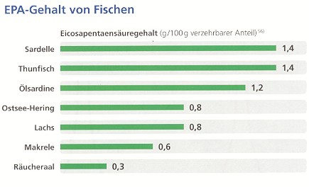 ihrer Vorstufe Linolsäure bremsen. Fische z.B. enthalten reichlich EPA (Eicosapentaensäure)